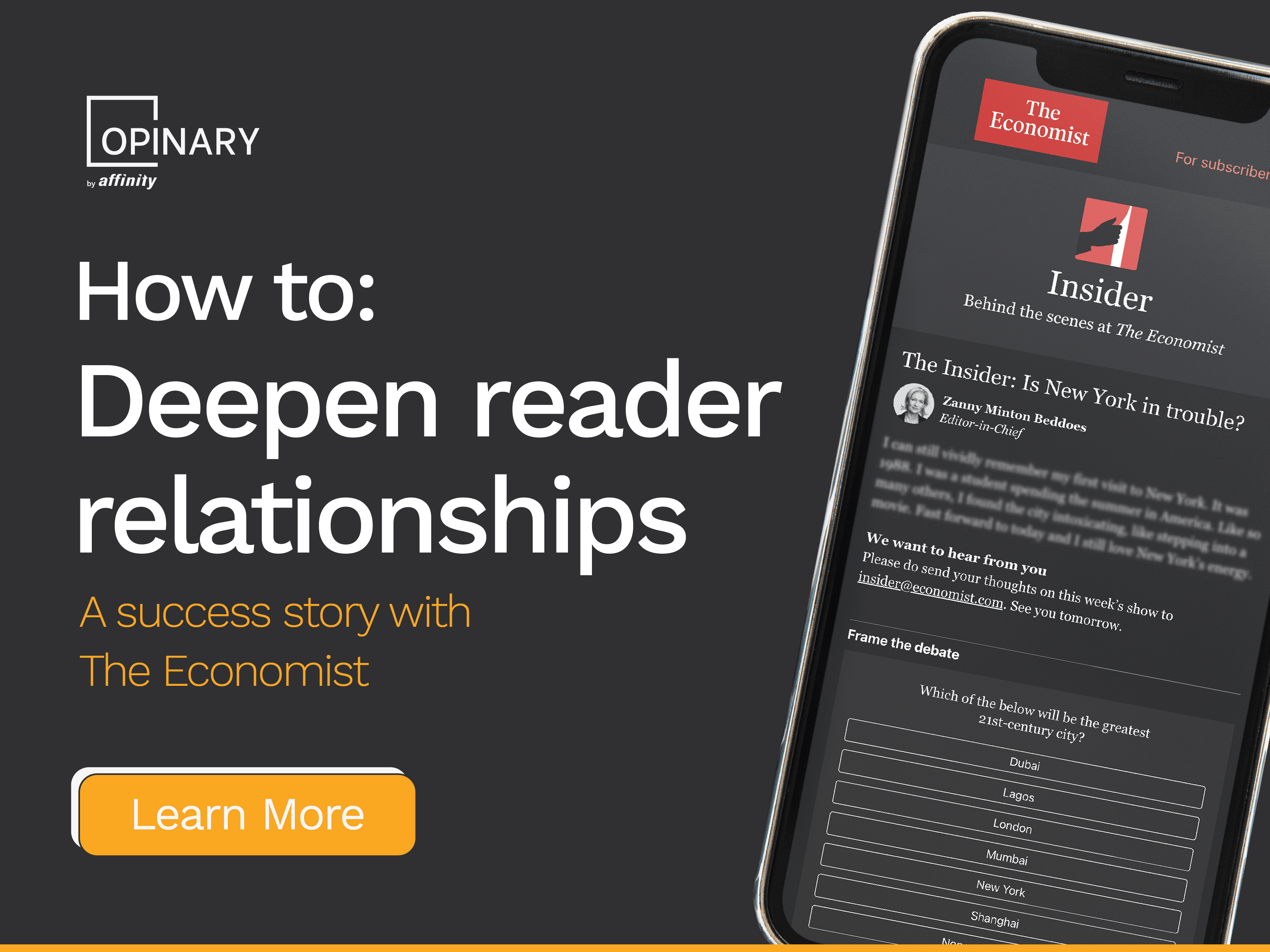 The Economist has deepened their reader relationships by launching The Insider - a weekly newsletter and discussion show, which enables readers to participate via polls.