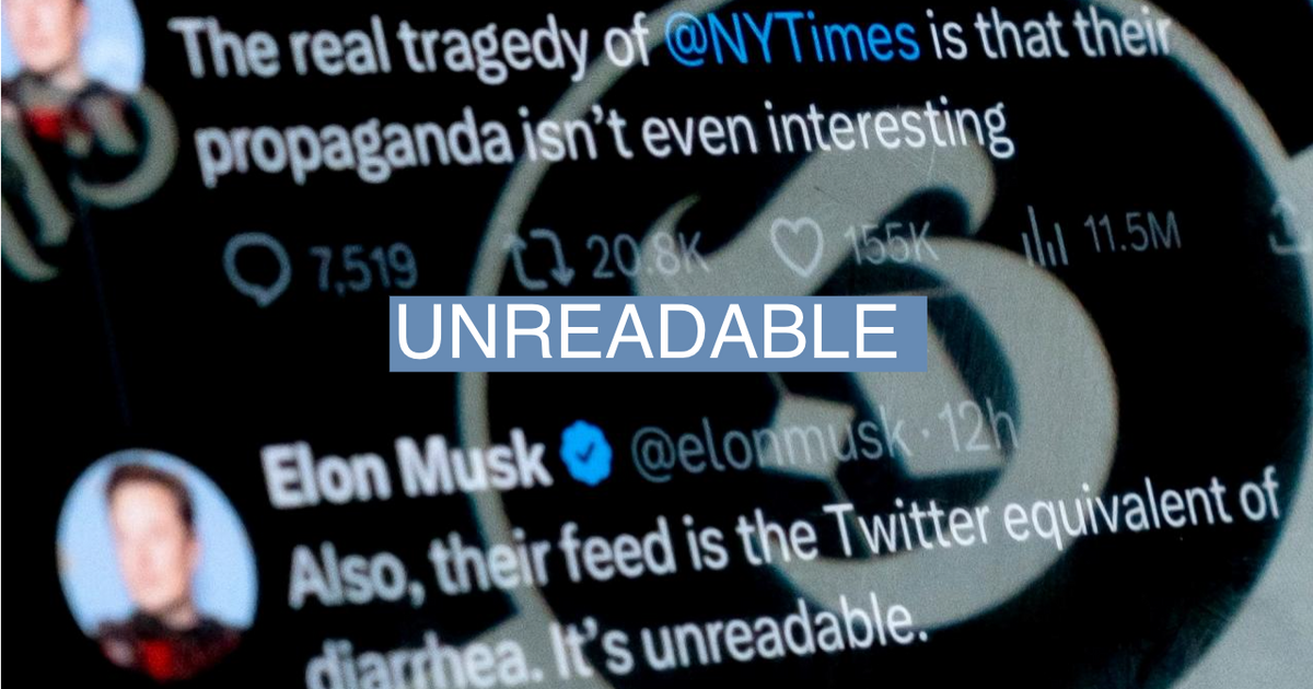 If you have the energy to still care about X/Twitter, the fact that the platform is attempting to limit access to The New York Times should be of real concern. Not that there’ll be any consequences for Musk. Remember when platforms were run by grown-ups?